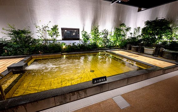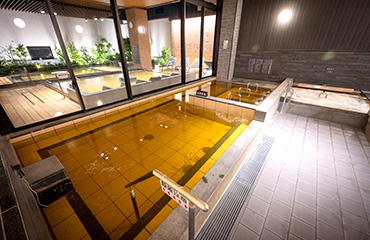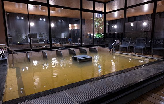 - 茶褐色の天然温泉がつるつるの温泉が気持ちいい