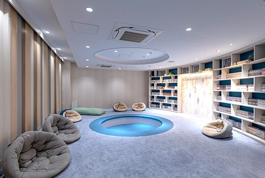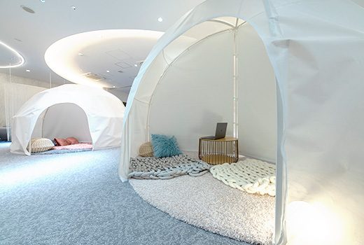 かまくら風なスペースでゆっくりしたり、リクライニングチェアがあったりとゆっくり寛げるのが嬉しいです。